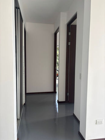 Este luminoso apartamento destaca por sus acabados modernos y espacios bien distribuidos. Los pisos de un elegante tono gris brillante (visibles en las fotos) unifican visualmente las áreas, creando una sensación de amplitud y limpieza.