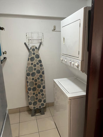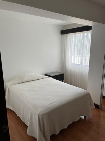 Los dormitorios están diseñados para el descanso, con suelos de madera que aportan calidez y amplios ventanales. El apartamento cuenta además con un cuarto de pilas independiente, equipado con centro de lavado en torre y espacio de organización, facilitando las tareas del hogar de forma estética y privada.